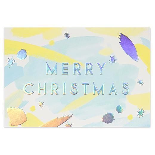 オーロラ箔押し加工と蛍光色を使用したポップなテイストのカードです。